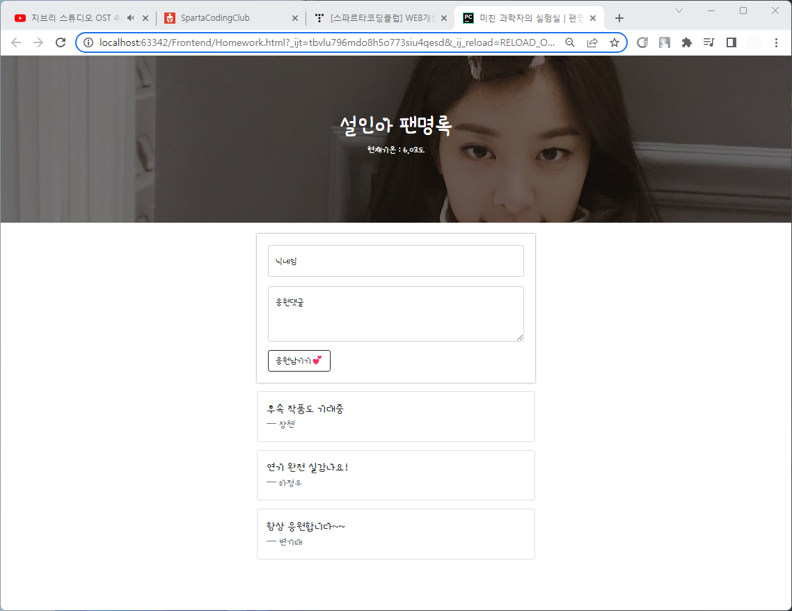 ☁ 2주차 숙제 : 팬명록에 날씨 정보 넣기