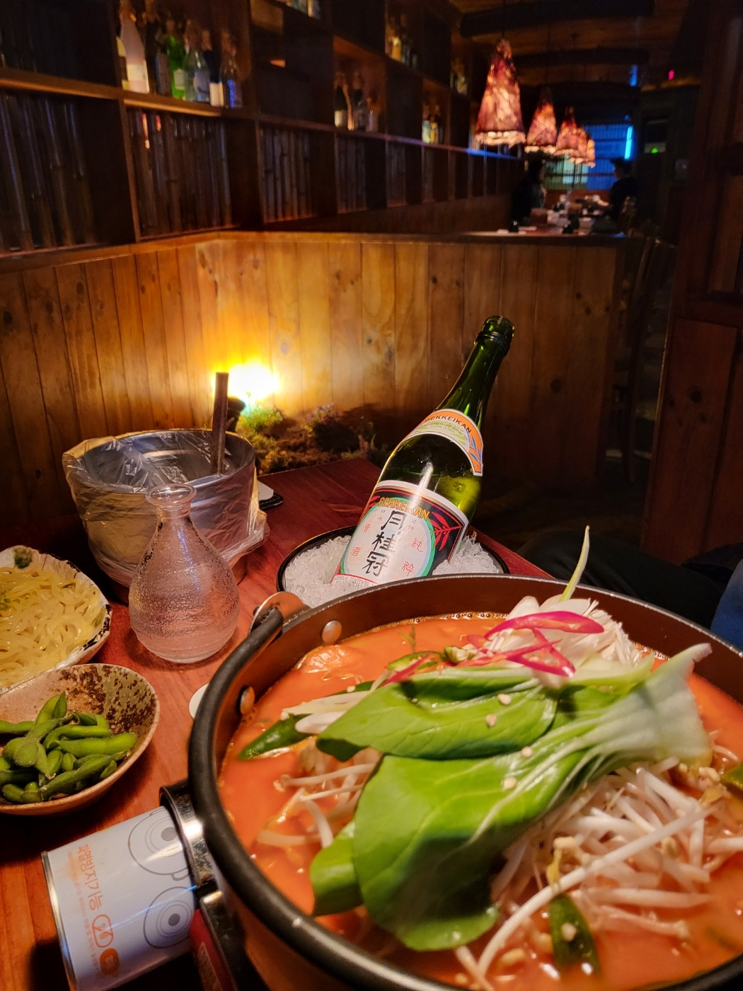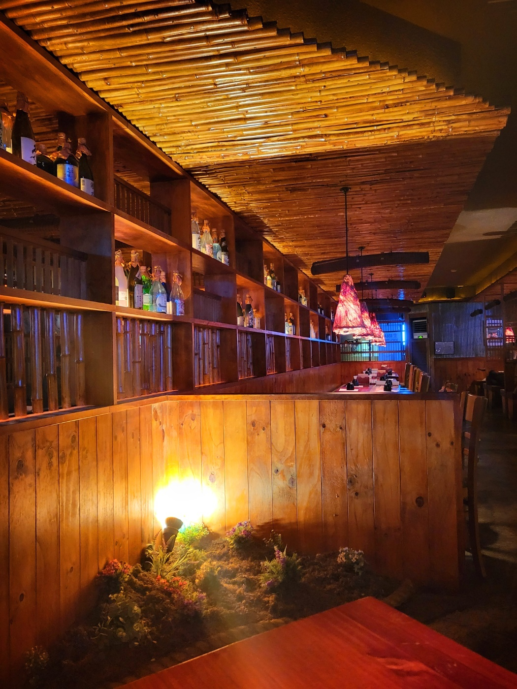 토모는 友達(ともだち:토모다치) 일본어로 '친구'라는 뜻이다. 가게에 들어서면 붉은빛의 전등이 각 테이블마다 비추고 있는 게 눈에 들어오는데 한지로 감싸 포근한 분위기가 느껴진다. 더욱이 목조 인테리어라 더 증폭되는 듯하다. 칸막이 테이블마다 멋스럽게 연출한 공간은 직선적이면서도 보일 듯 말 듯 묘한 분위기를 잘 살려 술이 술술 들어갈 것 같은데 칸막이 테이블이 만석이라 찍지 못해 아쉽다.