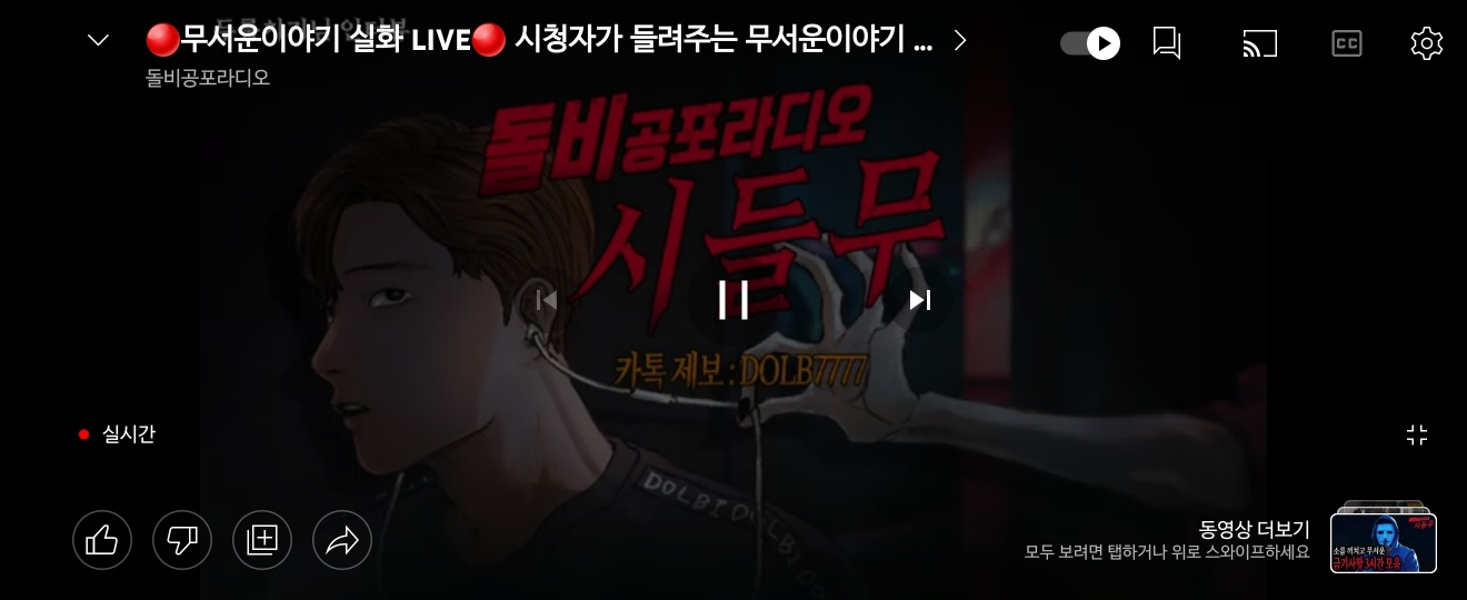 요즘 뜨거운 관심을 가지고 매일 시청 중인 유명 공포채널 '돌비공포라디오'의 시들무(시청자가 들려주는 무서운 이야기). 한 번도 이런 적이 없었는데 오늘은 '끊김 현상'이 나아질 생각을 하지 않았다. 그래서 가장 먼저 우측상단의 '⚙️'버튼을 눌러 화질을 저화질로 바꿔봤다. 고화질의 데이터를 모바일로 옮겨오면 이용 시 많은 용량을 소요하기 마련이다. 하지만 그럼에도 불구하고 같은 현상이 지속된다.