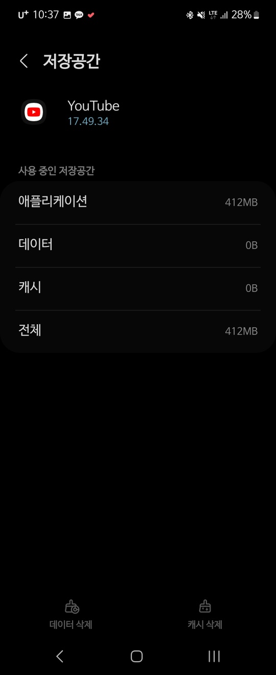 창을 열면 저장된 데이터/캐시의 모습이 보인다. 하단에 데이터 삭제/ 캐시 삭제를 눌러 삭제해주면 된다.