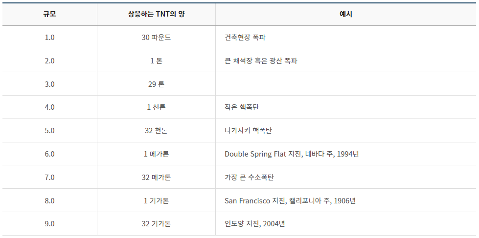 한편 이번 지진은 올들어 가장 큰 규모의 지진으로 확인된다. 위키피디아에 따르면 '지진의 규모'란 지진의 강도나 절대적인 '크기'의 추정치이며 지진이 얼마나 지반을 흔들 수 있는지를 나타낸다. '한국지진연구센터'에 따르면 지진의 규모는 다음과 같이 나눌 수 있다.