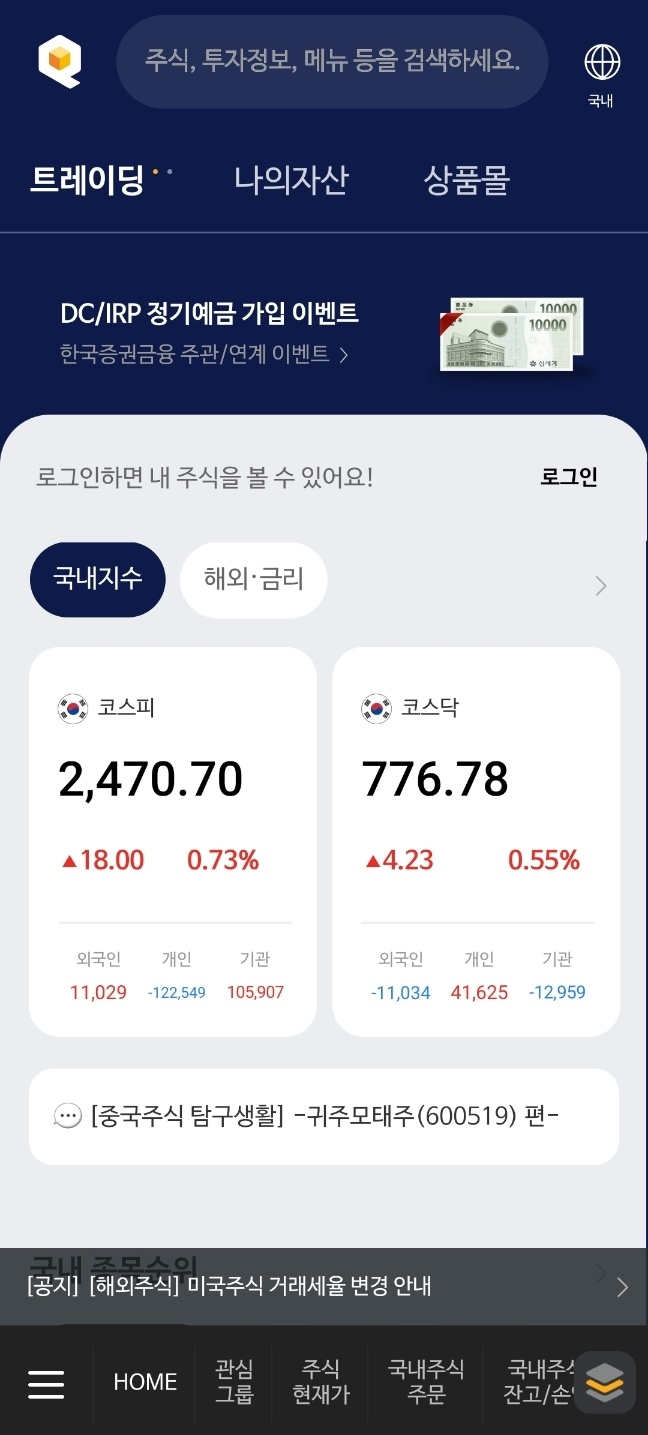 세 번째로 추천하는 앱은 'NH투자증권QV'이다. 유저에게 주식 거래, 뮤추얼 펀드 투자 등 다양한 투자 서비스를 제공한다. 이동 중에도 투자관리에 힘쓰는 유저들에게 인기 있는 편이다.